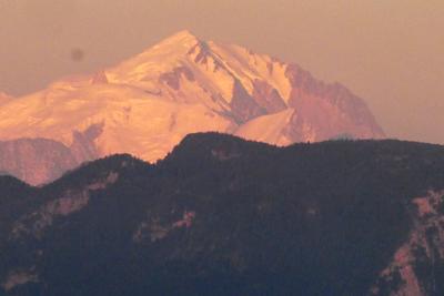 --- Le jour suivant (Jeudi 6 Août), je me lève avec un beau lever de soleil sur le Mont-Blanc.