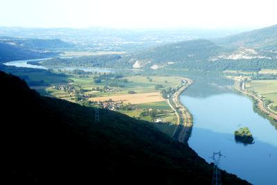 dominant le Rhône et la plaine de Yenne où se trouve la Chapelle Saint Romain