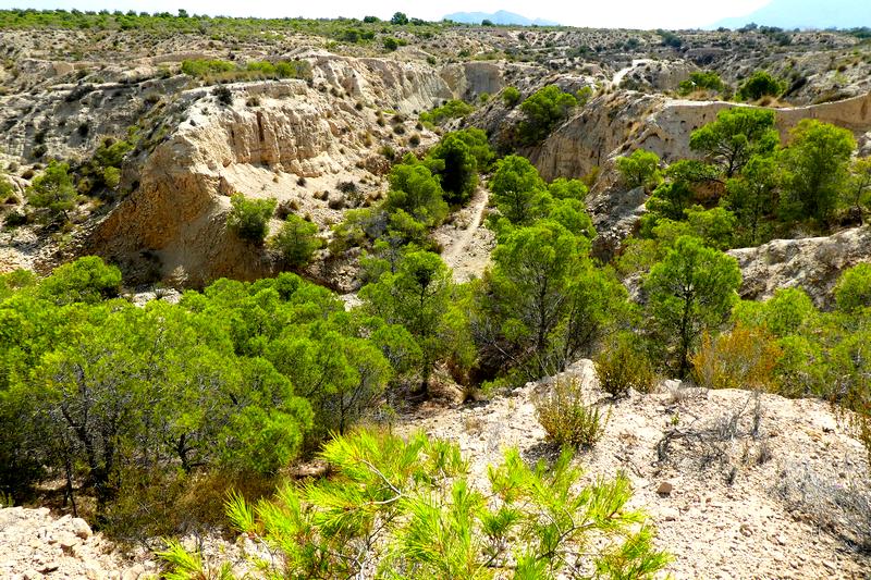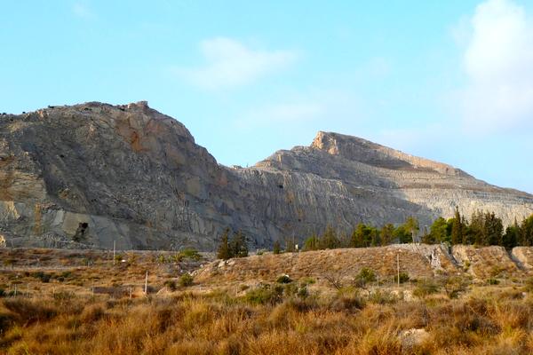des petites montagnes transformées en carrière de pierre, quelques amandiers, histoire de cueillir une poignée d'amandes.