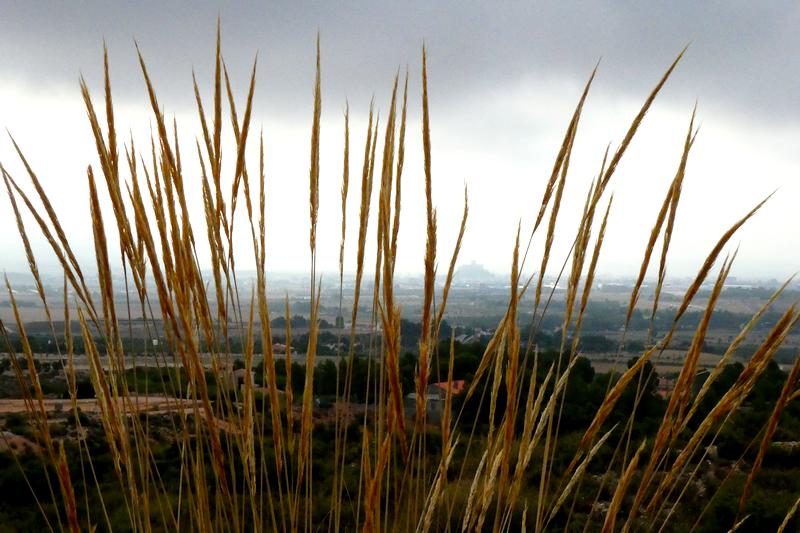 hier, je sors facilement de la ville, après m'être arrêté dans une Cafétéria où j'ai pris un cafe con leche et quelques glaçons. Après 2-3 km de piste le long de l'autoroute, je traverse un quartier résidentiel, et alors le chemin grimpe doucement dans la garrigue.