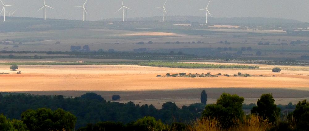 je me retourne j'ai une vue à 180° sur la vallée et au loin Almansa avec son