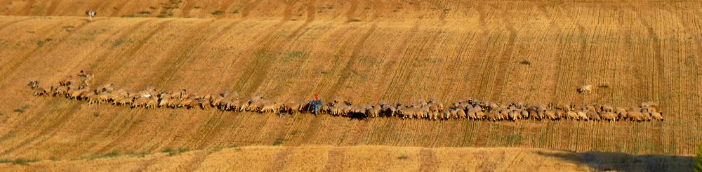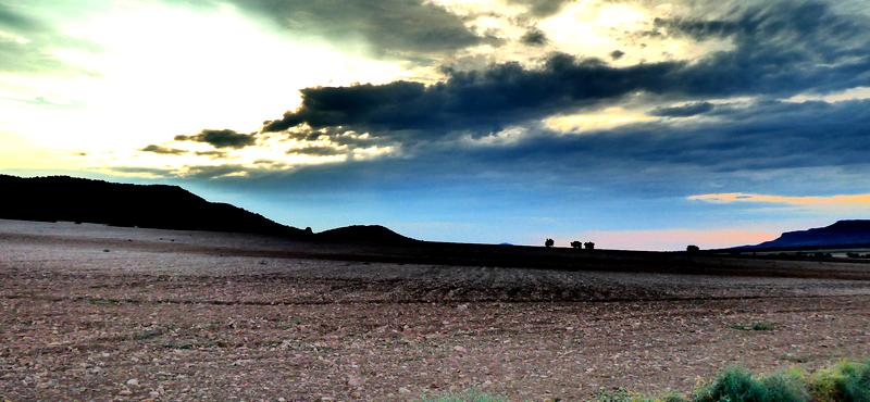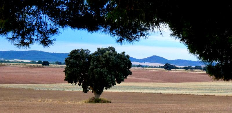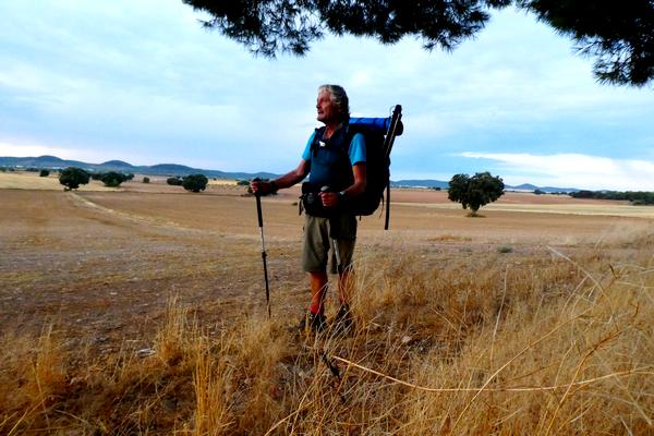 Je me lève à 5h30 un peu avant la pèlerine en bicyclette qui est arrivée hier soir. La nuit a été moyenne... Je m'arrête au 2ème bar de l'Avenida de la Paz où je retrouve Miguel le patron du 1er bar où j'ai dîné hier soir. C'est un homme sympa, il me paye mon petit déjeuner. Je mets des glaçons dans ma poche à eau et je pars sous un ciel nuageux, il fait encore nuit. À peine sorti du village, il commence à pleuvoir. Je prends mon parapluie que je tiens à la main sans l'installer. Je marche une quinzaine de minutes avec ce parapluie qui protège bien, puis la pluie s'arrête. Je range le parapluie et je continue. Après un passage sur une petite route, l'itinéraire suit un chemin de terre pendant un moment, un chemin qui navigue entre des terres agricoles, avec un horizon bien dégagé, malgré le ciel toujours gris. Il y a ensuite un beau passage entre des champs de céréales avec ici et là des pins. Le soleil commence à sortir et cela entraîne un bel effet dans le ciel avec le mélange des nuages à l'horizon. Il y a des petites collines, des rangées de pins et le ciel qui s'illumine peu à peu... J'aime ces grands espaces, ces terres aux tons ocres et bruns et le ciel qui prend de belles couleurs avec le soleil qui fait éclater les nuages dans une belle symphonie. Au milieu d'un vaste champ de céréales il y a un troupeau de moutons alignés comme en file indienne. Il y a ensuite une partie de l'itinéraire qui se fait dans un bois de pins et c'est un peu comme un jeu de piste, des flèches qui font aller à gauche à droite et à nouveau à gauche, passer entre les pins, les genévriers, les romarins et autre arbustes. Là, on est loin de la circulation et ce cheminement est très agréable. Je fais une première pause pour rafraîchir les pieds et manger 2 barres chocolatées. Le chemin serpente ensuite sur une colline toujours au milieu des pins et le reste du parcours se fait entre des terres agricoles où s'alternent des oliviers, des amandiers et des céréales. Je fais une deuxième pause pour casser quelques amandes. J'arrive alors à Casas del Cerro d'où l'on a une vue magnifique sur ce beau village de Alcalá del Júcar. Je prends de nombreuses photos puis je descends dans ce qui apparaît comme un vallon très encaissé en suivant un sentier qui serpente... Il doit y avoir au moins un dénivelé de 200 mètres. J'arrive au bord du Rio Júcar, où se trouve une zone récréative avec beaucoup de monde qui se baigne. Je m'arrête dans un bar boire une bière et j'appelle Juan-Miguel qui me dit de venir à la Casa de la Cultura. Il me fait entrer dans un bâtiment et m'ouvre une pièce qui est une salle de classe pour immigrés. Il y a un tableau, des tables et des chaises, pas de lit . On met par terre 2 matelas en mousse cela fera l'affaire. Quand je ressors vers 18h, il y a de l'orage et il pleut. Je vais reconnaître le chemin pour demain. Je vais au Pont Romain qui traverse le Rio et je monte vers l'église. Je repère la Calle Posito par laquelle commence l'ascension du quartier ancien de cette localité. Je fais beaucoup de photos de ce village tout à fait typique et très touristique. Ensuite je cherche un restaurant où je pourrais dîner pas trop tard mais j'ai beau faire le tour deux trois fois du centre de cette localité, je ne trouve rien... Je fais même un tour le long d'un canal pour arriver à une Meson, et là je dois attendre 20h30 pour m'asseoir, boire un tinto de verano et ensuite commander le dîner qui sera un peu trop copieux. J'ai eu les yeux plus gros que le ventre, cependant on me sert 2 verres de vin de la région de Ribadeira qui est délicieux... |