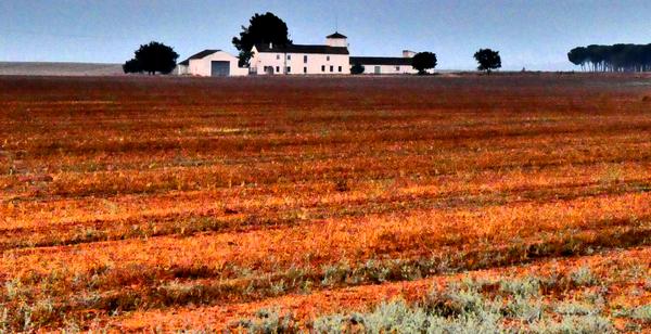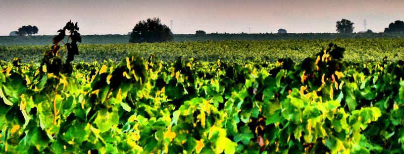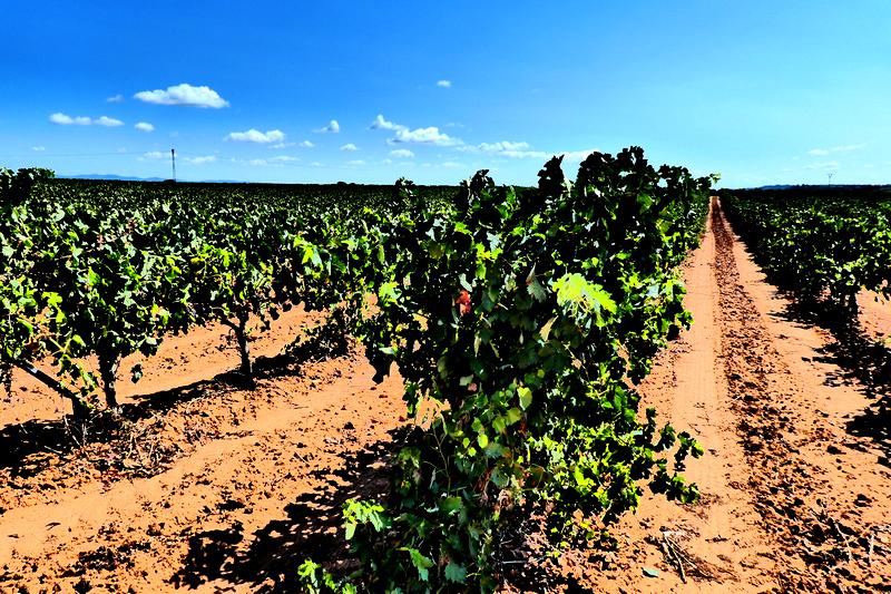 je navigue au milieu de vignobles, de champs de céréales et des amandiers...