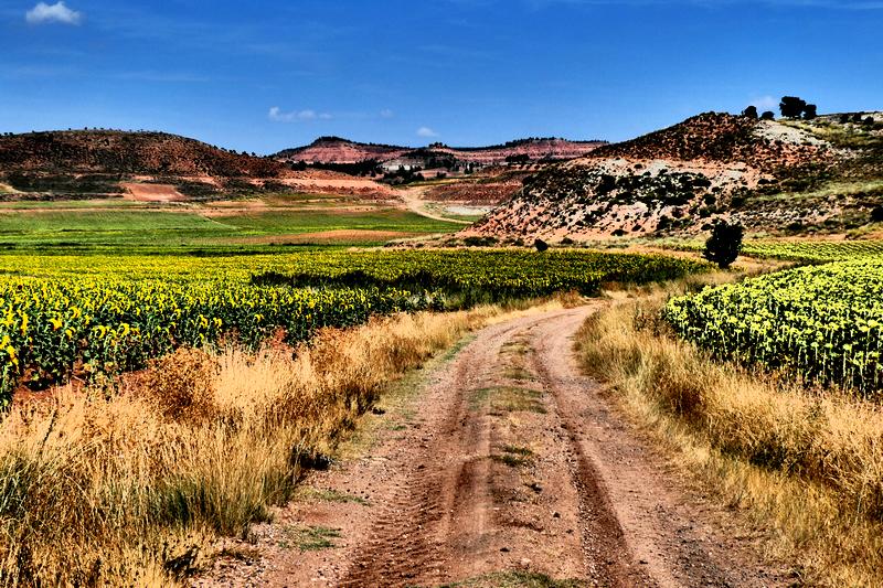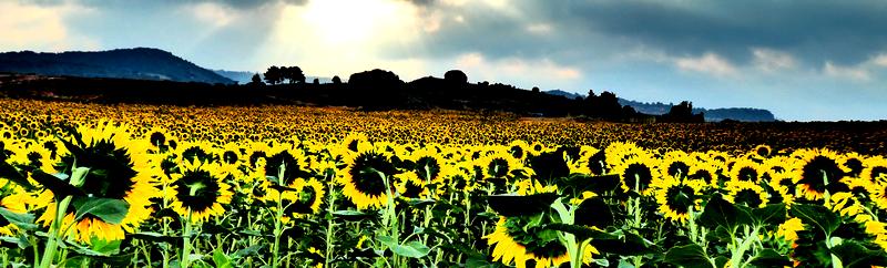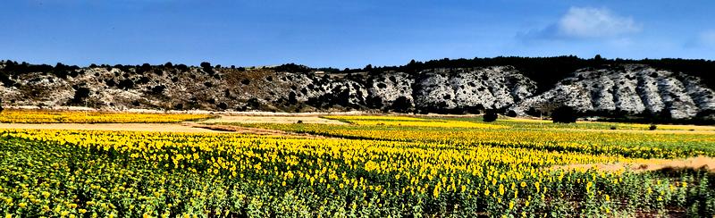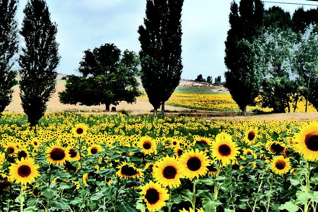 aussi plus fatiguante, il y a de grands champs de tournesols entourés de