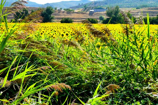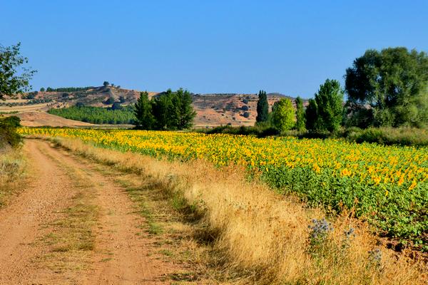 et surtout tournesols et un peu plus loin un Arroyo et ensuite la carretera.