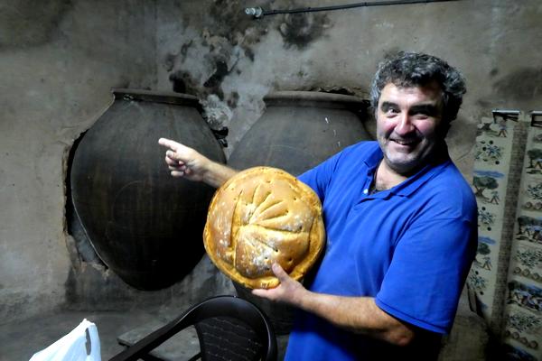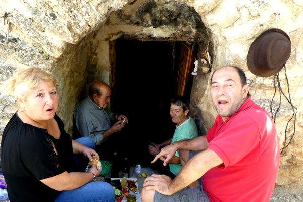 visiter sa cave où trônent 2 énormes jarres qui datent de plusieurs siècles. C'est un peu comme si on était entré dans le "Saint des Saints...", seule une petite lampe à huile nous éclaire, nous parlons à voix basse et Pepe nous raconte les histoires de ces caves à vin, qui se trouvent dans des grottes dont l'origine remonte à la fin de la période Wisigoth. (8ème siècle après J.C.)