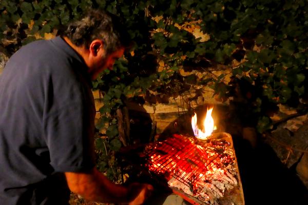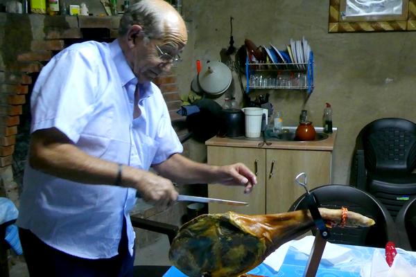 grillades, pendant ce temps Paolino coupe des petits morceaux de jamón ibérico
