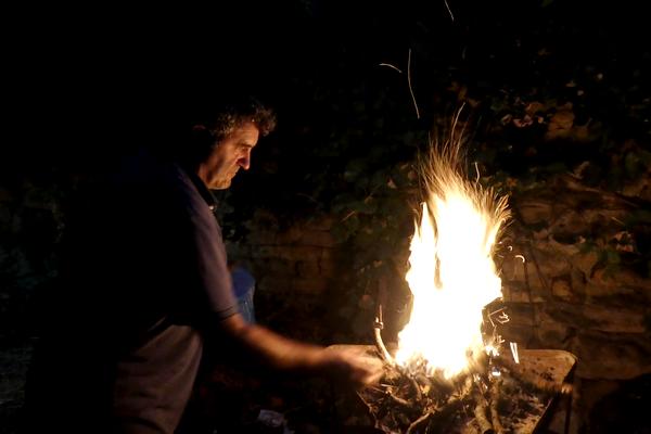 Ça se passe dans un local attenant à sa cave. Le feu est allumé pour faire des