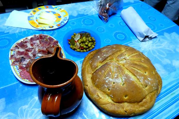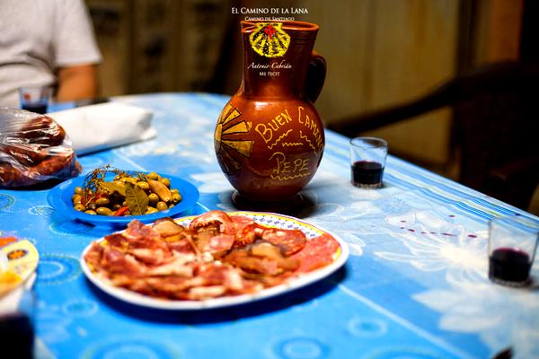 Le vino tinto remplit les verres et on se régale de tous ces produits que Pepe
