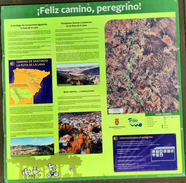 l'environnement. Puis il y a une descente par de jolis sentiers ombragés et des pistes jusqu'à Trillo (Camino de Viana de Mondéjar). Arrivée à cette localité je passe