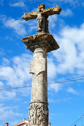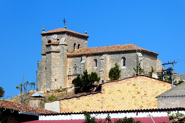 J'arrive à Hontoria de la Cantera après 14 kilomètres sans rencontrer aucune habitation ni âme qui vive ! Il y a un joli calvaire mais pas de bar ! Je m'arrête sous un abribus pour un temps de repos. Je traverse ensuite une nationale et je prends un chemin agréable qui serpente entre les cultures avec quelques traversées d'arroyos et me voilà arrivé après 6 kilomètres à Revillarruz où je m'arrête à un bar tenu par un tunisien parlant français. Je bois 2 cocas accompagnés d'oeufs, de jambon de Morcilla et des lentilles. J'avais besoin de prendre des forces, car l'étape est longue ! Je traverse Cojóbar où se trouve une belle église de style roman.