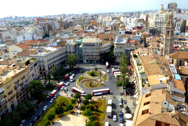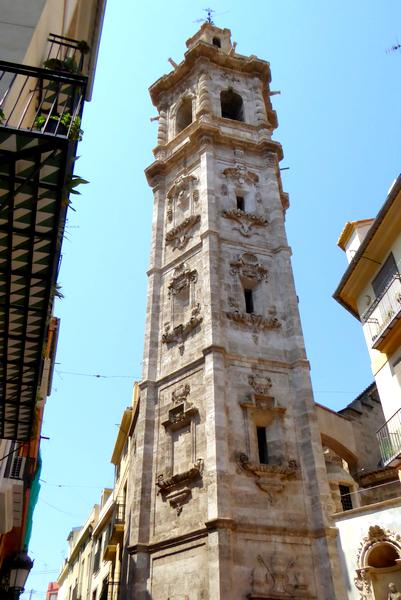 J'arrive à Valence par avion de Marseille à 8 h. Je prends le métro (Ligne 5) pour la station de Xativa. De là, je me rends à l'hébergement que j'ai réservé au 44 de la Calle Pelayo "Zalamera BnB". C'est tout proche de la gare RENFE où je vais voir les horaires du train que je prendrai demain matin pour m'éloigner des zones urbaines entourant la ville. Je vais ensuite visiter le centre de Valence : La Plaza del Ayuntamiento, la Plaza Lope de Vega où se trouve la Iglesia et la Torre de Santa Catalina et ensuite la Cathédrale que je visite comme un vrai touriste avec plan et écouteurs ! Je monte au sommet de la Torre de Micalet qui comporte 207 marches, petit entraînement avant de commencer le Chemin. De là-haut, j'ai une belle vue à 360° sur la ville de Valence et ses environs. Je bois une première cerveza sur la Plaza de la Virgen et je vais ensuite visiter les Torres de Serranos, où se trouvait la porte nord d'accès à la ville.