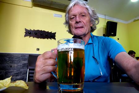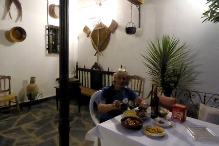 La cereveza bien glacée et le soir dîner dans le jardin intérieur de la Casa Rural