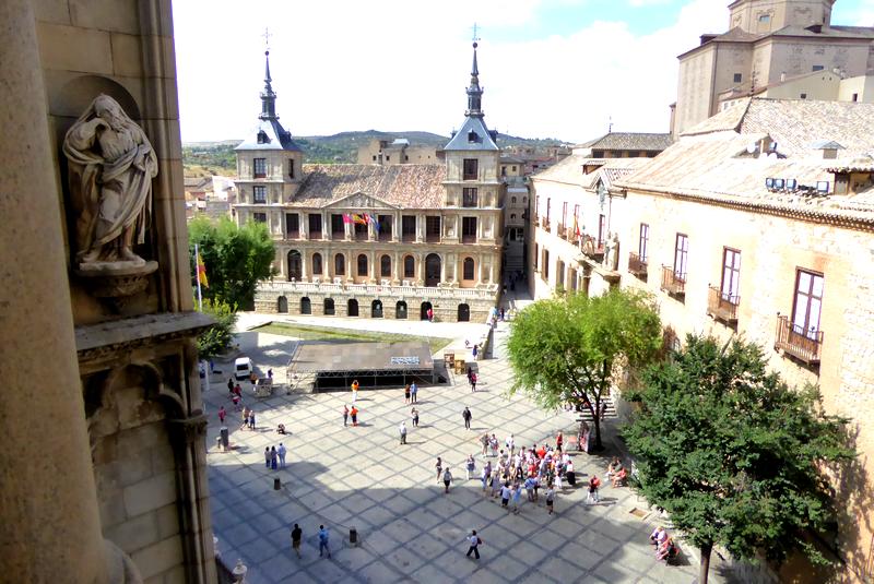 Vue plongeante du haut de la tour sur la plaza del Consistorio