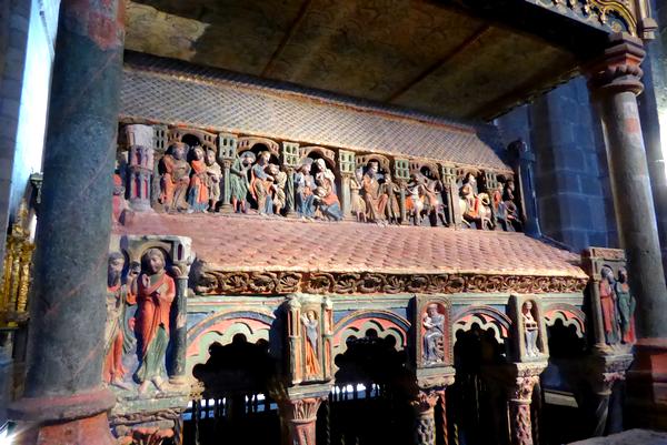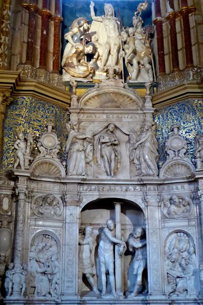 A l'intérieur de la basilique, le cénotaphe des "Santos Hermanos Mártires" en pierre polychrome,
