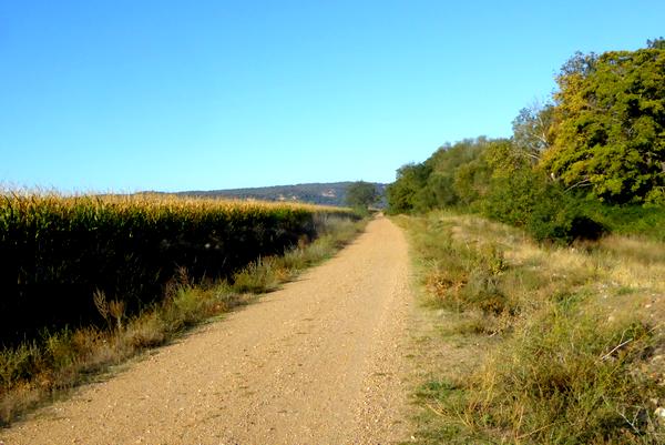 Jusqu'à Villalazan, je marche sur des chemins sableux et agricoles au milieu de grandes étendues de maïs avec quelques passages au bord du rio Duero. 18 kilomètres que j'avale avec juste une petite pause, le temps de casser quelques noix ! Arrivé dans ce pueblo, je m'arrête dans un bar où je bois un coca et me régale de quelques tapas. Je prends ensuite la route pour rejoindre Villaralbo, mais comme il y a un peu trop de circulation, je vais avec les indications de Gérard du Camino suivre les chemins qui serpentent au plus près du rio Duero. C'est un bel itinéraire isolé et sauvage avec une faune certainement assez riche mais comme j'ai encore pas mal de kilomètres, je ne peux guère prendre le temps d'observer les nombreux oiseaux qui habitent ces futaies, mais leurs chants par moments me rappellent leur présence !