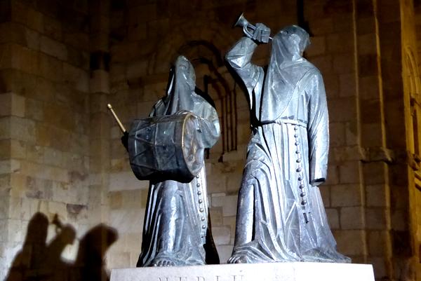 Les statues emblématiques de Zamora devant la Iglesia de San Juan de Puerta Nueva