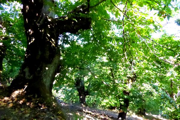 Les pentes sont couvertes de châtaigniers parfois centenaires...