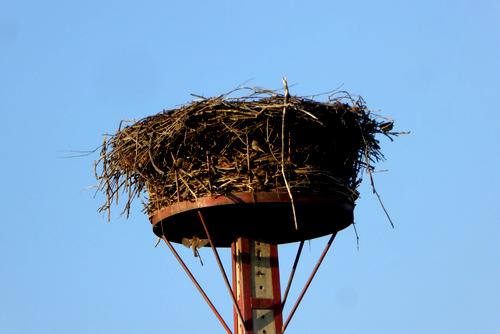 De petits oiseaux nichent dans ce nid déserté par les cigognes