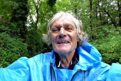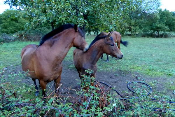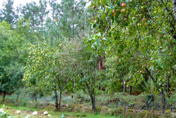 Je traverse deux pueblos qui me fourniront les fruits du jour : Figues, pommes et raisin. Pour la première fois depuis que j'arpente ces Chemins de Saint-Jacques, j'apprécie ce temps pluvieux. Je marche tranquillement au cœur de cette belle nature galicienne avec les chevaux, les vaches, les ruisseaux qui courent le long des chemins, les chiens qui aboient à mon passage, et ce beau ciel qui roule de gros nuages noirs que les rais de lumière du soleil arrivent à transpercer ! Je déclame comme chaque jour mes poèmes et je finis même par oublier les kilomètres, le sac qui pèse sur le dos, la pluie qui fouette le visage, je suis un troubadour céleste et je fais corps avec tout ce qui m'entoure...Je n'ai plus de pieds, plus de jambes, seulement des yeux, une bouche et l'incantation poétique qui résonne sous les futaies...