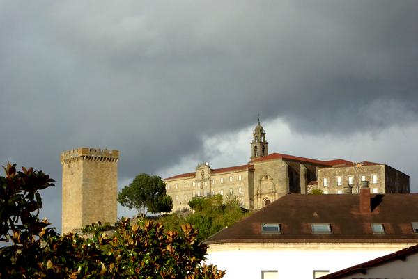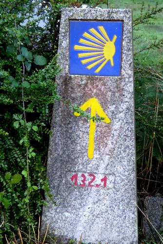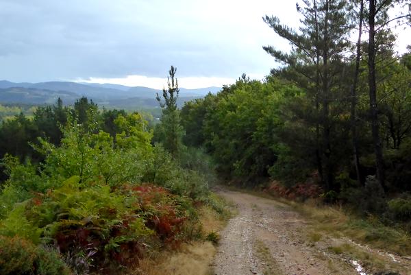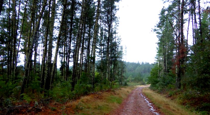 La Patronne de l'Hostal As Viñas me sert un petit déjeuner copieux et comme l'étape est courte, je pars un peu plus tard que d'habitude, vers 8 h, comme le jour se lève. J'ai revêtu mon équipement de pluie qui me sera bien utile, car tout au long de l'étape, il y aura des averses intermittentes. C'est un beau parcours qui me fait suivre des chemins agricoles, des sentiers parfois transformés en ruisseaux et de longues pistes en forêt.