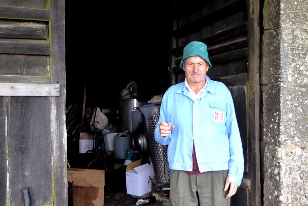 Cet homme "bouilleur de cru" artisanal me fait déguster 2 chupitos de sa production !