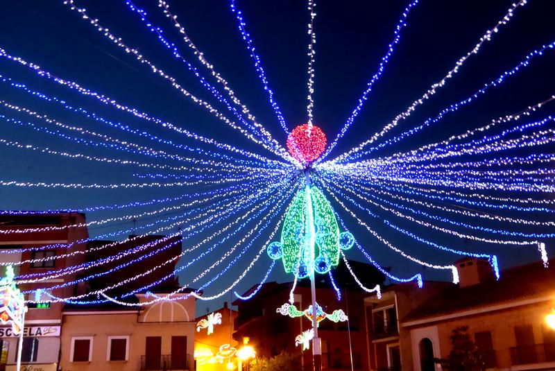 Après douche, lavage et repos je vais faire soigner au Centro de Salud 2 ampoules que j'ai attrapées sur les talons (Mon talon d'Achille, comme chaque année, mon tribut à payer pour aller sur le Camino !) La jeune femme qui s'occupe de moi fait des miracles et elle me conseille fortement d'enduire chaque matin mes pieds de vaseline ce qui selon elle est la meilleure protection pour éviter les ampoules ! J'ai suivi son conseil et au cours des 38 jours de marche qui ont suivi, je n'ai attrappé aucune autre ampoule et j'avais les pieds dans un état impeccable !! (Comme quoi malgré toutes mes pérégrinations au cours des années passées, j'ai toujours quelque chose à apprendre !) Le soir, dîner sur la Plaza Mayor (Plato Combinado, Cerveza et Pacharan) avec comme décor de belles illuminations en préparation d'une fête prochaine...