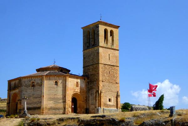 Je décide ensuite, comme le temps s'est un peu rafraîchi, de quitter Ségovie plus tôt et d'essayer d'aller un peu plus loin sur le Chemin. Je retourne à la Pension récupérer mon sac, mettre mes chaussures, et je quitte la ville par la porte de Santiago. Il y a ensuite une petite route qui monte vers le pueblo de Zamarramala avec à mi-hauteur la petite église de la Vera Cruz que je prends le temps de visiter.