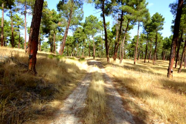 Je traverse ensuite un grand bois de pins sur lesquels sont attachés des godets pour récolter la résine. J'aperçois au loin le pueblo de Añe où j'espère trouver un bar... Je vais boire 2 cocas avec des olives et du chorizo, je remplis ma gourde d'eau fraîche et je mets dans la poche qui est à l'intérieur de mon sac quelques glaçons ce qui me permettra d'avoir de l'eau fraîche jusqu'à la fin de l'étape.
