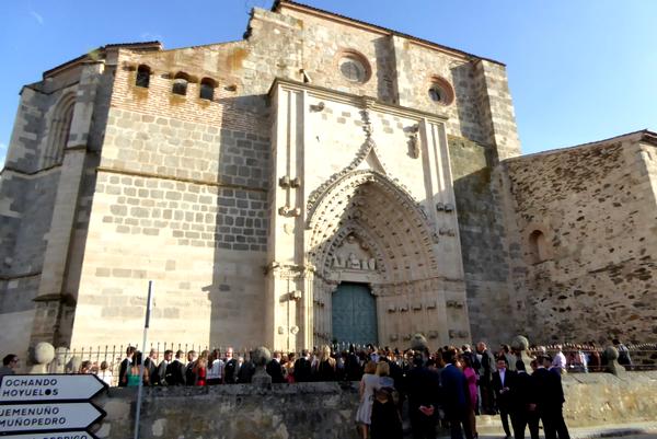 J'arrive à Santa Maria à 16h30, je bois une cerveza bien glacée, je téléphone au propriétaire de l'Albergue qui vient m'ouvrir le local. Après le rituel, douche, lavage et repos, je monte au centre de cette localité. C'est samedi, il y a un mariage avec du monde devant l'église. Avant que la cérémonie ne commence, j'en profite pour visiter l'église et le cloître. Je fais ensuite quelques courses, je bois un Tinto de Verano avant le dîner. Un dernier verre, du Pacharan, avant d'aller me coucher... La nuit sera peu reposante à cause de la chaleur qu'il fait dans l'Albergue.