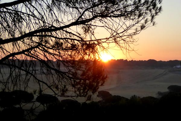 Je quitte Coca à 6h45. J'ai bien dormi. Après un détour à la sortie de la localité, près du cimetière, il y a une descente raide pour traverser le Rio et remonter sur un plateau où j'assiste au lever de soleil qui est un enchantement ! A nouveau longues pistes sablonneuses au milieu des pins propices à la déclamation des poèmes...J'enchaîne le Transsibérien et le Panama ...50 minutes de voyage poétique dans l'univers de Cendrars...