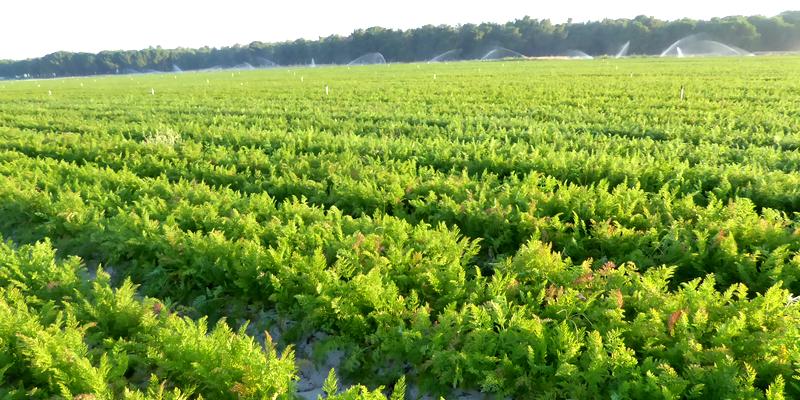 Je débouche alors sur une vaste plaine couverte d'immenses cultures : des champs d'oignons et surtout des champs de carottes qui s'étendent à perte de vue...