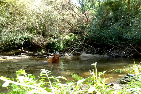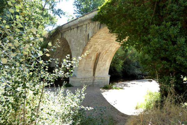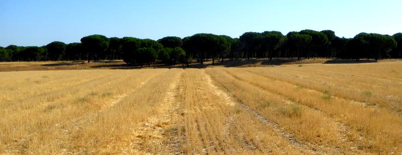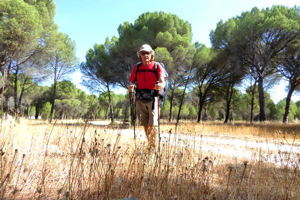 J'arrive à Villeguillo, le bar est fermé, je mange 2 carottes ramassées dans le champ, et je fais le plein d'eau. Il reste 20 kilomètres... A nouveau ces vastes cultures maraîchères et ces champs de carottes qui suffiraient à remplir les étals de tout un pays ! Je fais une pause pour rafraîchir les pieds et hop ! encore 2 carottes que je ramasse dans le champ, puis j'entame une longue traversée au cœur d'une forêt de pins qui semble n'avoir jamais de fin...Je répète le mantra Om Namah Shivaya qui est l'un des mantras les plus populaires de l'hindouisme et particulièrement du shivaïsme...Je bascule alors dans une autre dimension...Il n'y a plus de chaleur, ni de sac, ni de fatigue...C'est comme si je glissais sur ces pistes sablonneuses...Après 2 heures de traversée, j'arrive à une route et un pont sous lequel coule ce Rio Eresma que je suis depuis plusieurs jours...Je descends pour un nouveau bain avec toujours autant de plaisir !