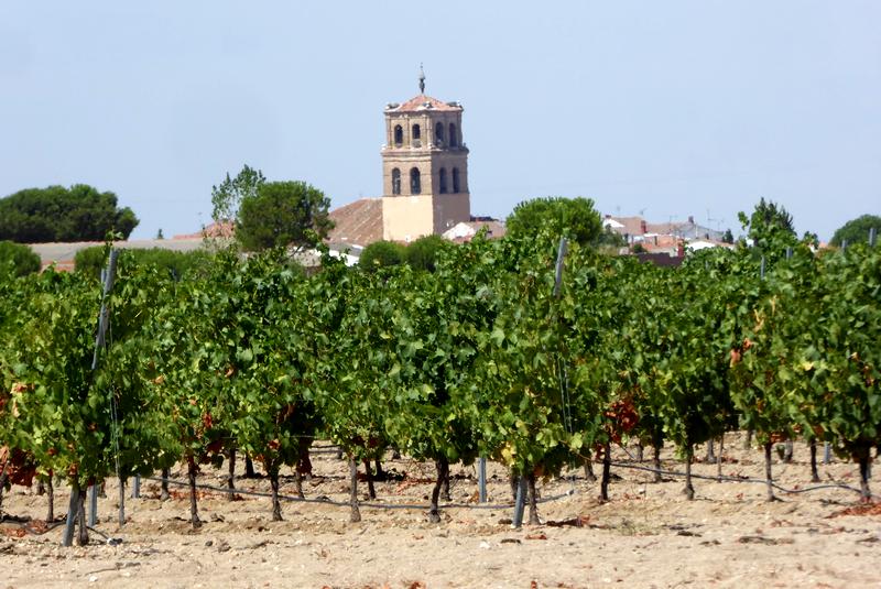Ensuite je grimpe sur un plateau pour retrouver une nouvelle forêt de pins...Je reprends alors la répétiton du mantra alternée avec la prière du pèlerin russe...les kilomètres défilent sans que je ne m'en aperçoive...et voilà au loin le pueblo de Alcazaren dominé par son clocher, à moitié dissimulé derrière des vignobles, les premiers que je rencontre sur ce Chemin...Mais je n'aurais pas le plaisir d'en manger car il n'est pas encore mûr !