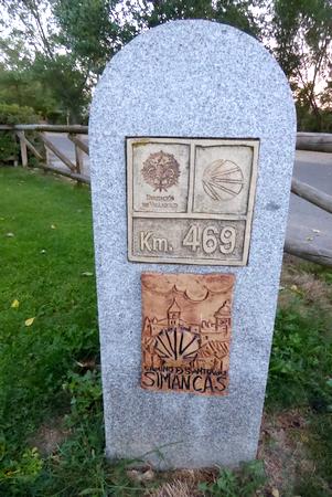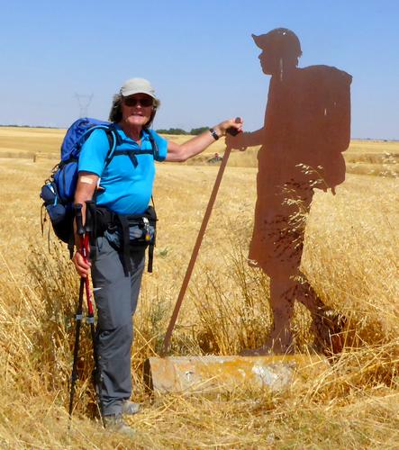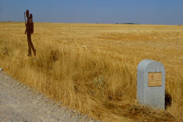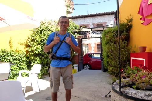 Un peu avant d'arriver à Wamba, je suis rejoint par un Italien, Giuseppe, qui marche avec des tennis et qui n'emporte pour l'étape qu'une petite bouteille d'eau de 50 cl ! On s'arrête pour boire un verre dans un bar de ce pueblo, puis comme je prends du temps pour rafraîchir les pieds et les enduire de vaseline, ce compagnon éphémère s'en va...je ne le reverrai plus.
