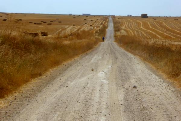 Le Chemin s'allonge au milieu des ces espaces grillés par le soleil...
