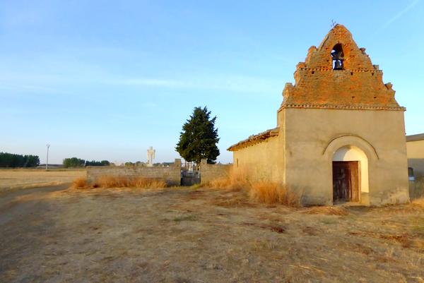Premier pueblo : Arenillas, c'est un hameau avec à la sortie, un lavoir, une fontaine et la Iglesia Santo Tomas. Il y a aussi quelques bancs qui m'invitent à faire une première pause au cours de laquelle je passe de la vaseline sur mes pieds par prévention...