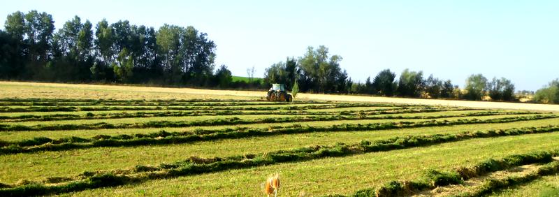 La luzerne est coupée, et disposée en lignes pour être facilement ramassée...