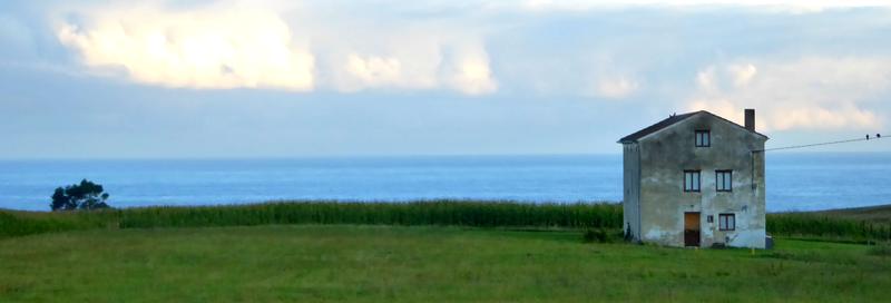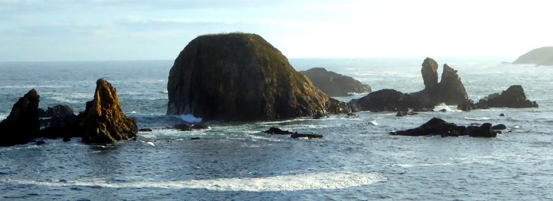 La ceinture bruyante de la mer enserre la côte.