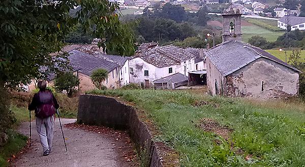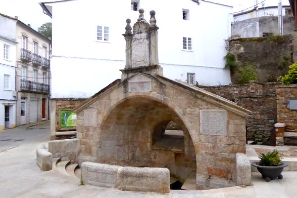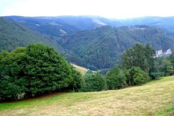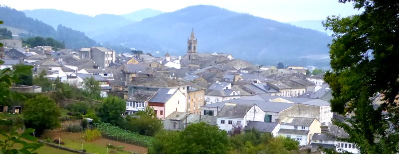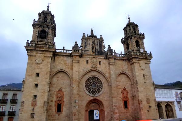 Je quitte l'Albergue avec Danielle à 6h30. Pour commencer, c'est un chemin forestier au milieu des eucalyptus avec une alternance de petits hameaux encore endormis...On arrive à 9h à Mondoñedo où se trouve une Cathédrale déclarée Monument National en 1902. On s'attable à un bar pour prendre un petit-déjeuner, cafe con leche, croissant et une tarte qui est la spécialité du pays.