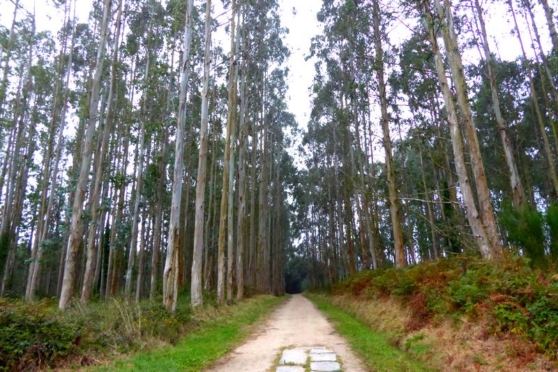 Je quitte l'Albergue à 7h après le petit-déjeuner. Le Chemin aujourd'hui est plutôt facile avec peu de dénivelés. Je parcours des petites routes campagnardes avec quelques belles traversées de forêts de chênes et d'eucalyptus en suivant de longues pistes où il est agréable de marcher et qui sont propices à la déclamation poétique...