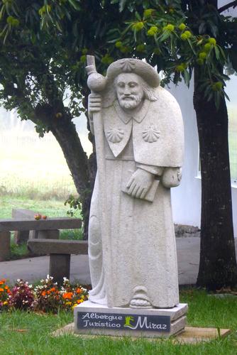 Je traverse plusieurs hameaux en suivant des petites routes, mais jusqu'à Miraz, la plus grande partie de l'itinéraire se fait au milieu de forêts de pins et d'eucalyptus. Un peu avant Miraz, je trouve un bar ouvert aussi j'en profite pour faire une pause et prendre un bon petit-déjeuner, cafe con leche avec des tartines de beurre et de la confiture.