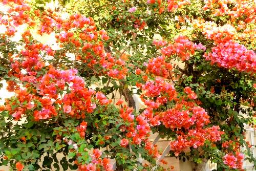 bougainvilliers. Le balisage est correct, je peux marcher sans la lumière de ma frontale car l'itinéraire est facile à suivre. Pendant un temps le chemin domine le rio à sec dans lequel j'ai marché hier.