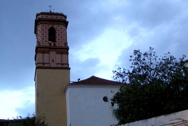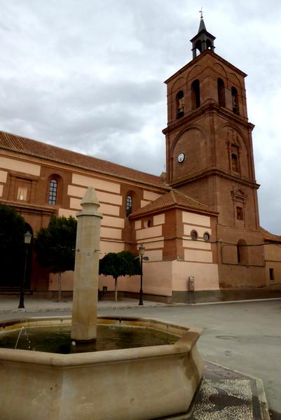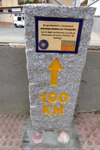 village et je me retrouve au point de départ où je m'arrête dans un bar. Là, je commande un cafe con leche et une tartine à la tomate avec du jambon...De quoi me redonner quelque force pour continuer l'étape. Je refais un tour du village pour voir l'église, l'ayuntamiento et en redescendant je vois la balise qui m'indique la sortie de ce pueblo que j'aurai parcouru 2 fois !