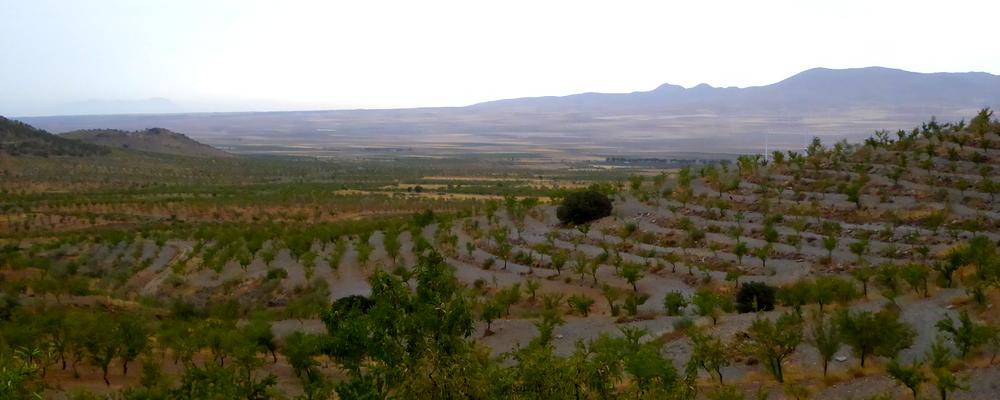 des pistes au milieu des champs d'amandiers. On va de colline en vallon avec