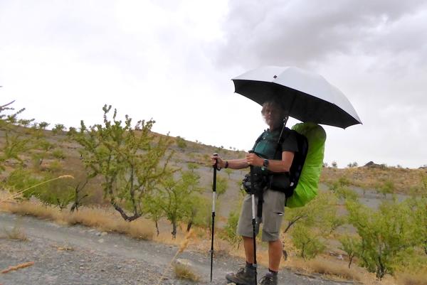 sac, mais cette pluie ne dure pas... Le Chemin continue à serpenter entre les amandiers avec de légers dénivelés et peu à peu amorce une descente pour arriver au pueblo de Ferreira où se trouve un centre d'interprétation de