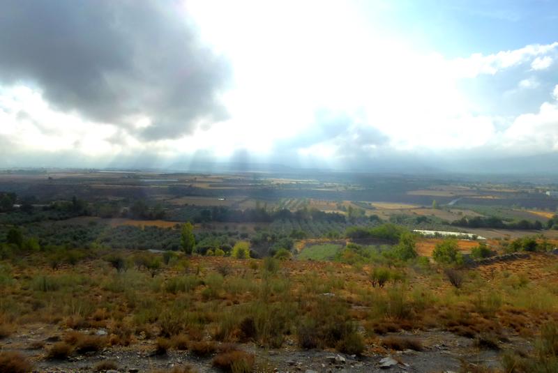 J'arrive alors à Jerez del Marquesado, où se trouve une jolie église. Ce matin, je craignais qu'il ne pleuve, mais le temps peu à peu se remet au beau fixe... J'interprète mal une flèche sur la place de l'église, aussi au lieu d'aller dans la direction qu'elle est censée indiquer, je m'engage dans une autre direction ce qui m'amène à faire le grand tour du pueblo, histoire de me