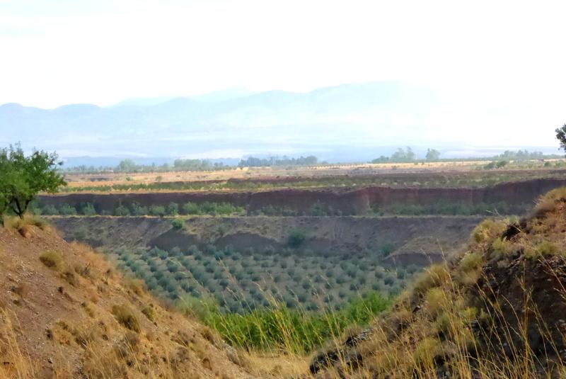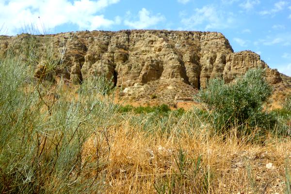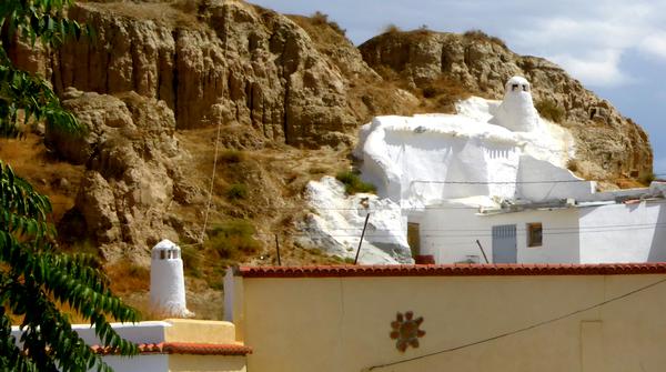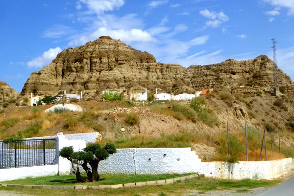 formes étranges qui entourent un vallon planté principalement d'oliviers. Ces rochers que l'érosion a sculptés pendant des millions d'années sont comme les gardiens séculaires de ce Chemin qui mène à la ville de Guadix, dans laquelle j'arrive en passant par le quartier des Cuevas où se trouvent de nombreuses maisons