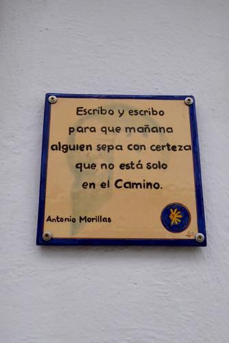 Il y a des hôtels, des restaurants et des bars plus que ce que le pèlerin peut souhaiter ! Puis je me retrouve bientôt sur une route au milieu des vignes dans lesquelles on peut apercevoir des groupes d'hommes et de femmes en train de vendanger. La route se transforme alors en un chemin terreux, caillouteux qui semble bien être un rio quand les pluies sont abondantes... Et pour finir l'étape, c'est une petite route que je vais suivre jusqu'à La Peza au milieu d'un décor somptueux ! Les derniers kilomètres offrent des panoramas spectaculaires et comme pour bien