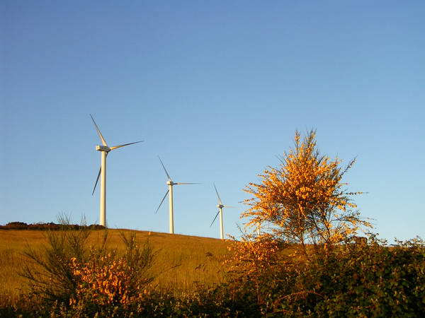 J'arrive au col gardé par cet alignement d'éoliennes...